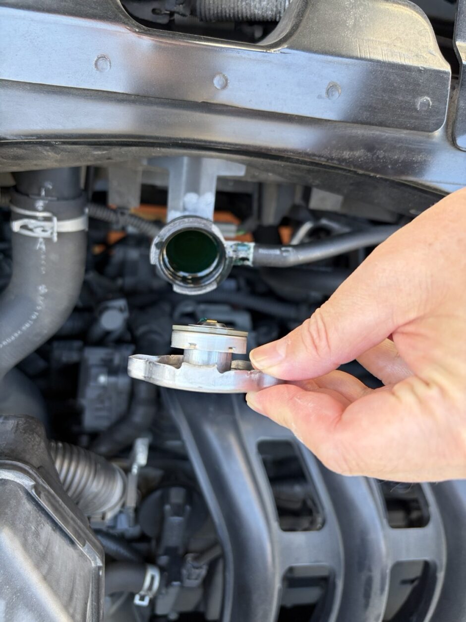 すぐエンジンを止めて、エンジンを冷やした上で、取り外して元のキャップに戻しました。