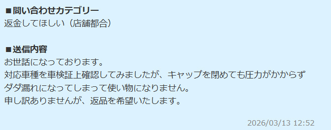 そして、購入したショップに問い合わせをしました。