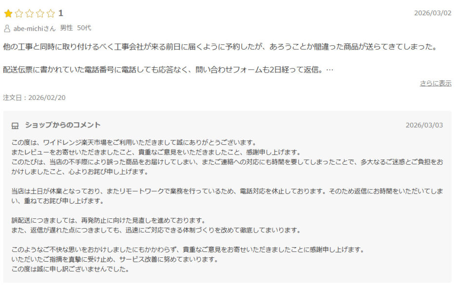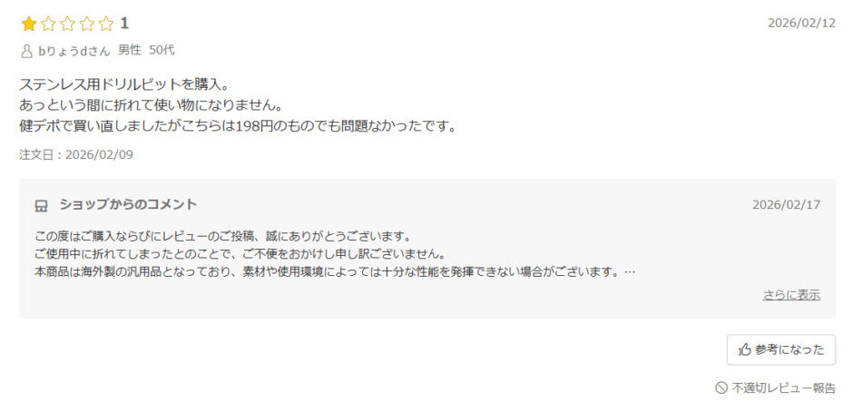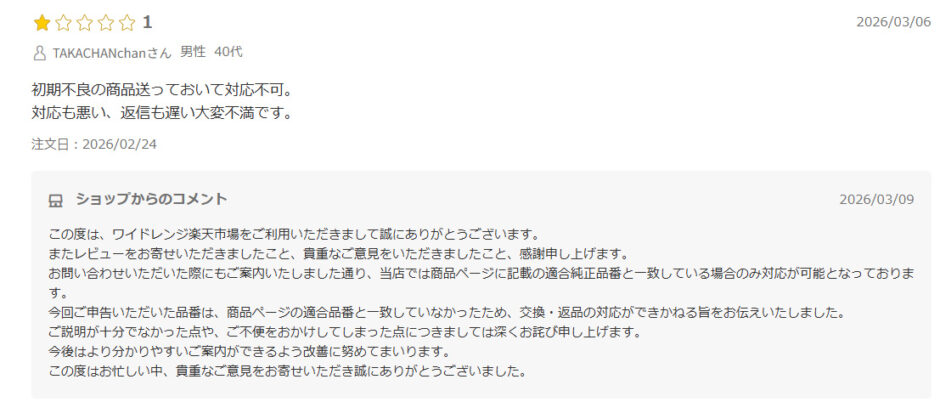 同様の不適合をうたって、返金しないレビューが見つかります。